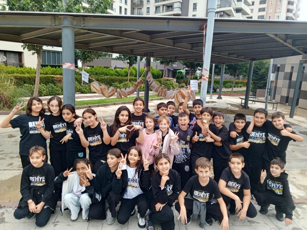 "Okulumuzun kıyafeti siyah penye üzerinde "BEHİYE HANIM ORTAOKULU "...