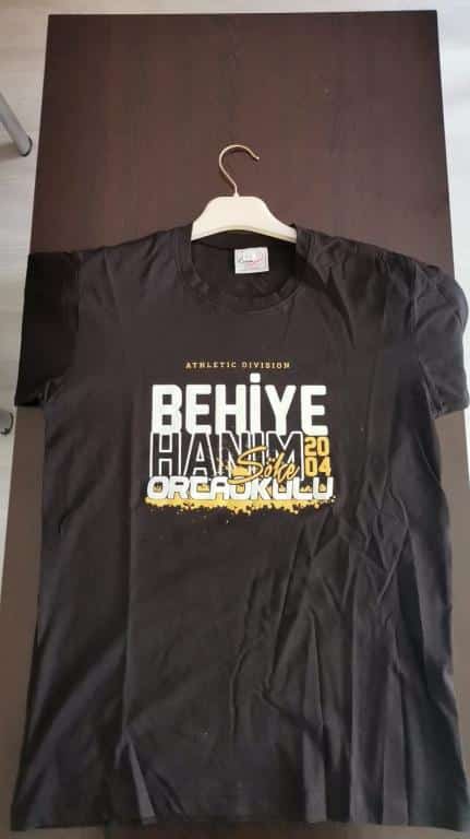 Kıyafeti istediğiniz bir okul kıyafeti satan mağazadan alabilir veya siyah penye tişörte "BEHİYE HANIM ORTAOKULU" LOGUSUNU BASTIRABİLİRSİNİZ.